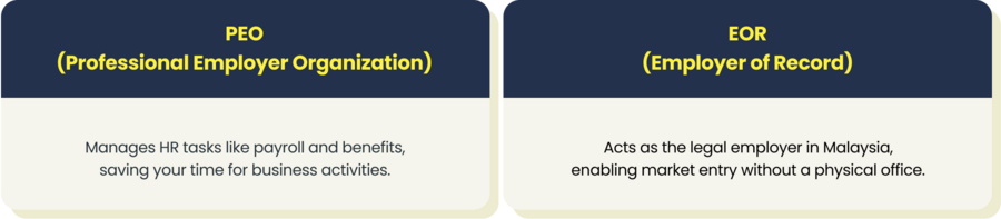 Streamline your business operations in Malaysia with our tailored PEO and EOR services. Designed specifically for the Malaysian market, our solutions optimize operational efficiency and ensure full compliance with local regulations, allowing your business to flourish in a competitive landscape.